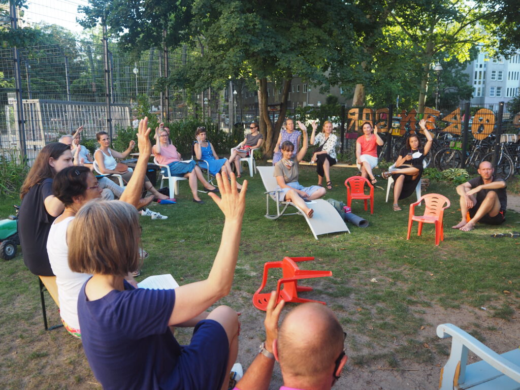 Zur besseren Organisation anfallender Aufgaben gibt es Kümmerer-Gruppen zu den unterschiedlichen Aufgabenbereichen im Garten, denen jede:r nach persönlicher Neigung beitreten kann.